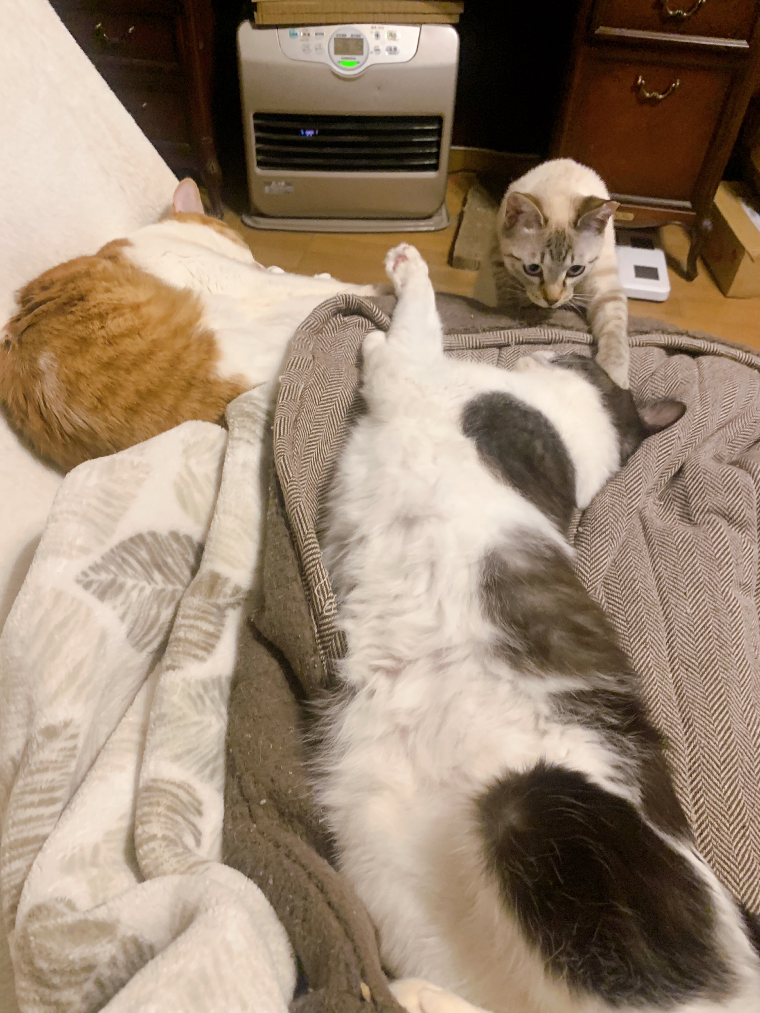 夜は夜で、人間と猫はたらふく晩御飯を食べました