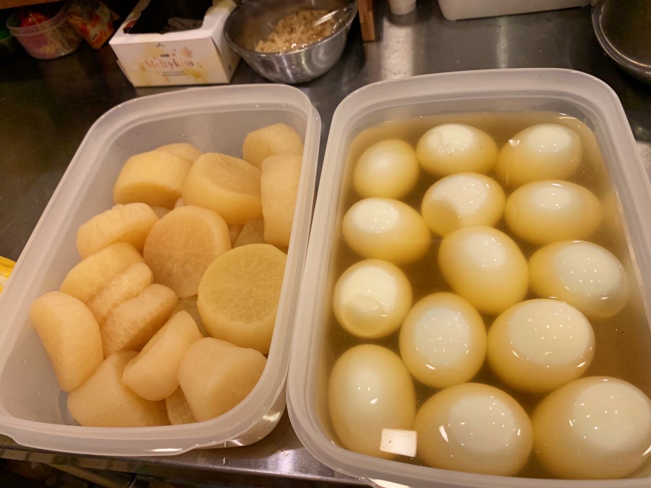 おでんの大根や、カブは事前に茹でて味付けておきました