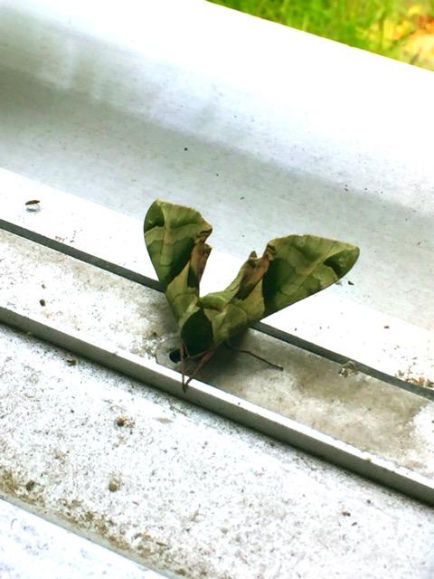 緑の葉っぱ柄の蛾