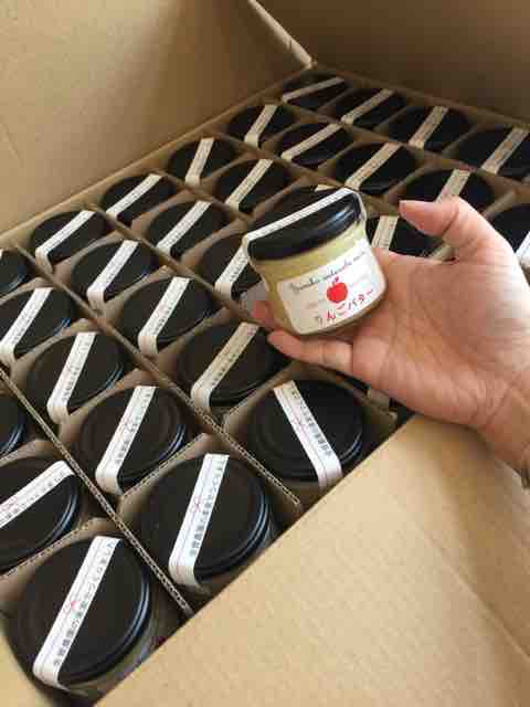 私はりんごバターのラベリング・・・