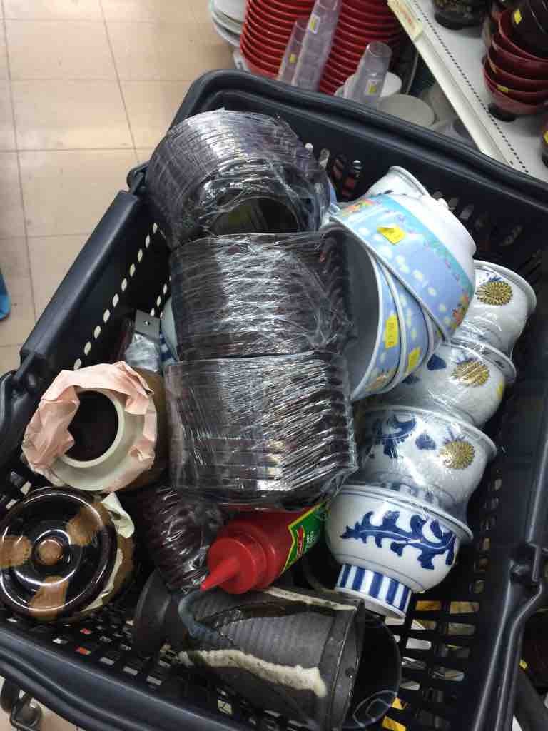 そして、県庁付近の100均で仕分け用のプラスティック箱やらを買いまくり