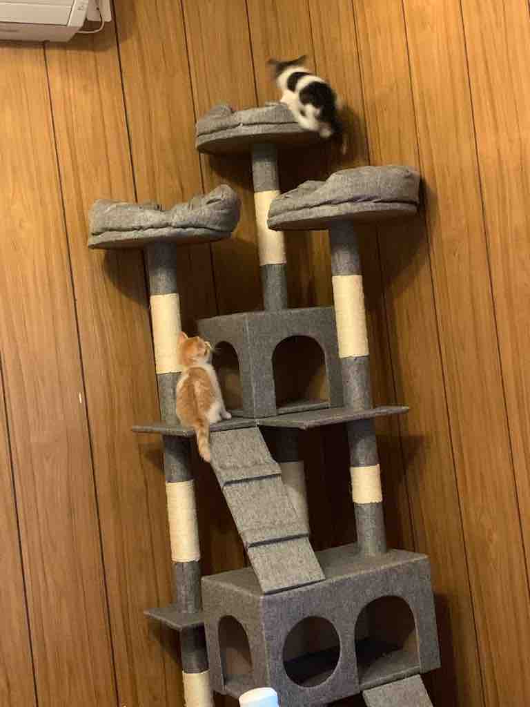 1匹を登らせるともう1匹もやりたがる