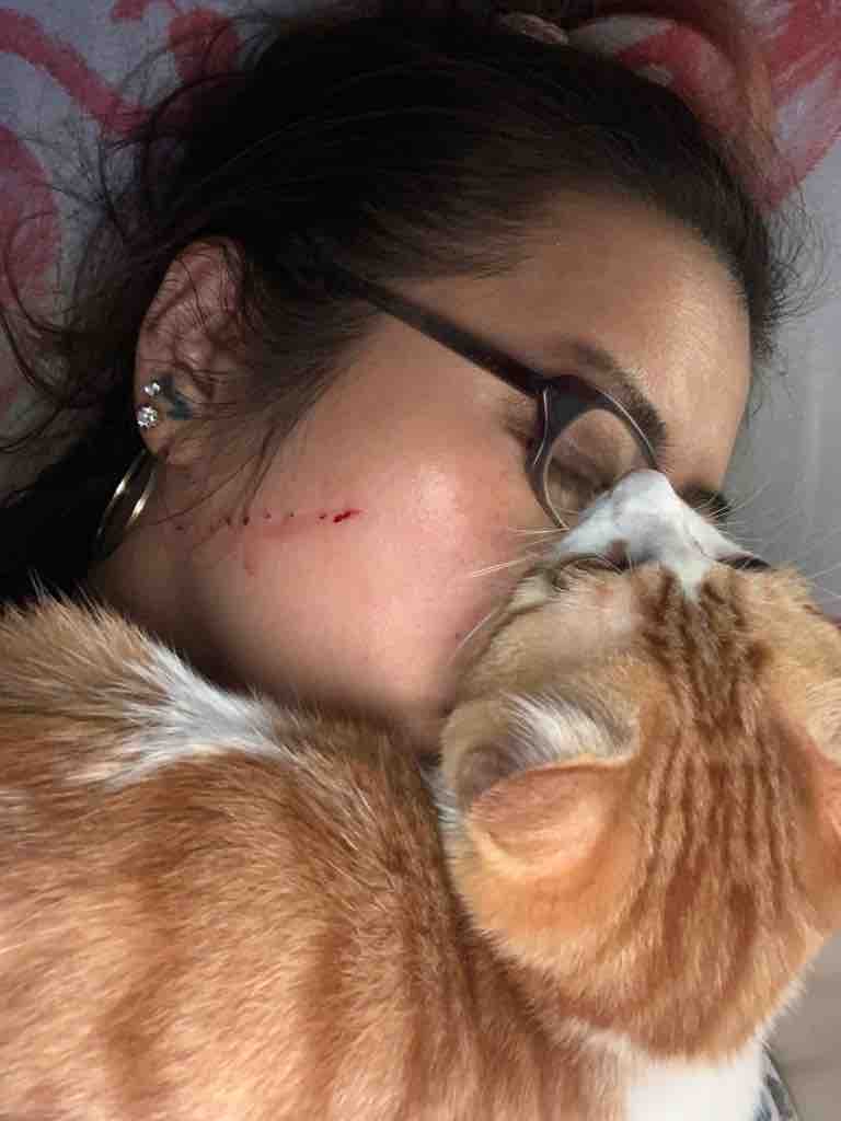 ずーっと鼻の上に顔乗せてく、るから、窒息しそうやったんですが