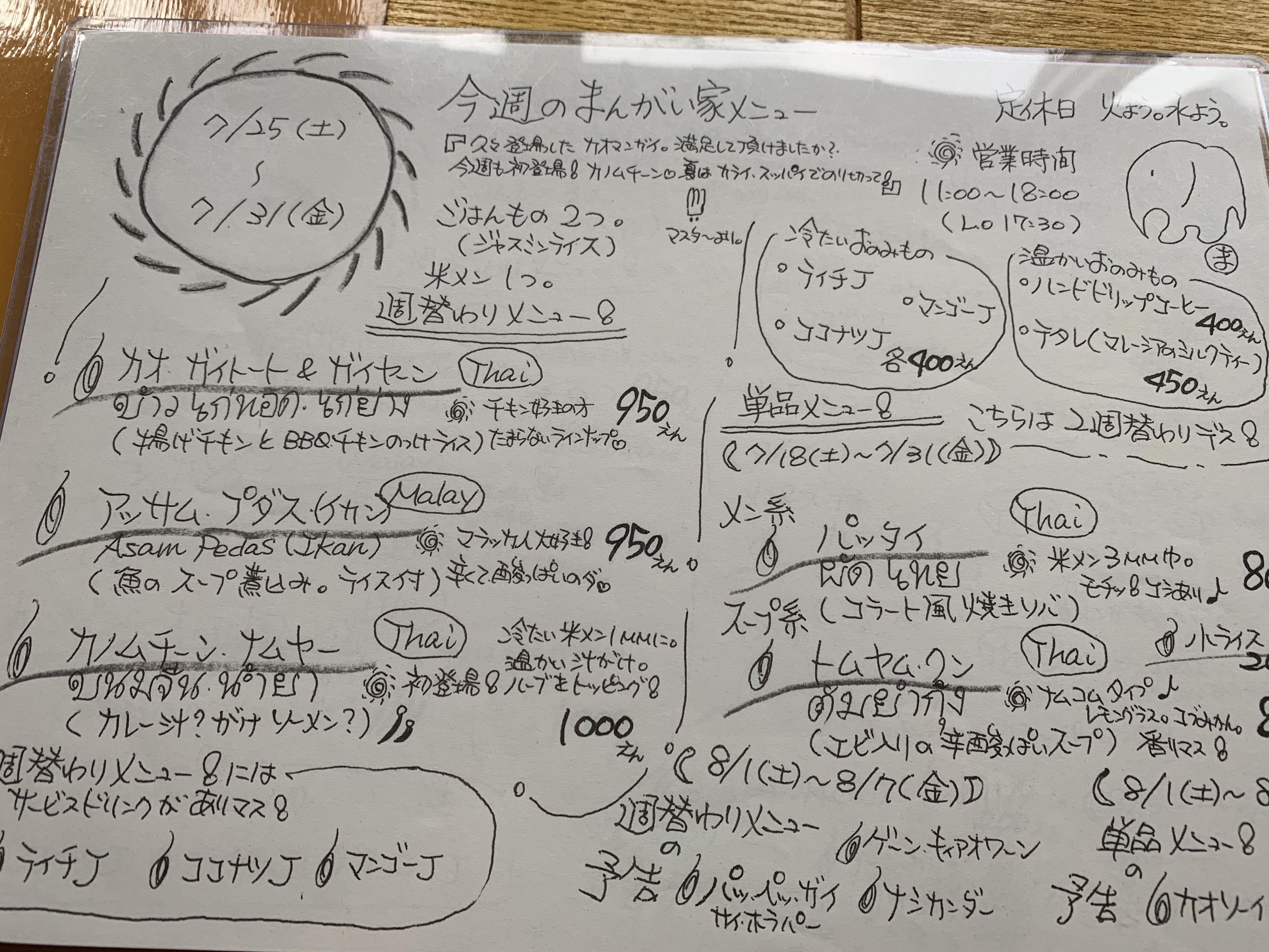 相変わらずの手書きメニュー