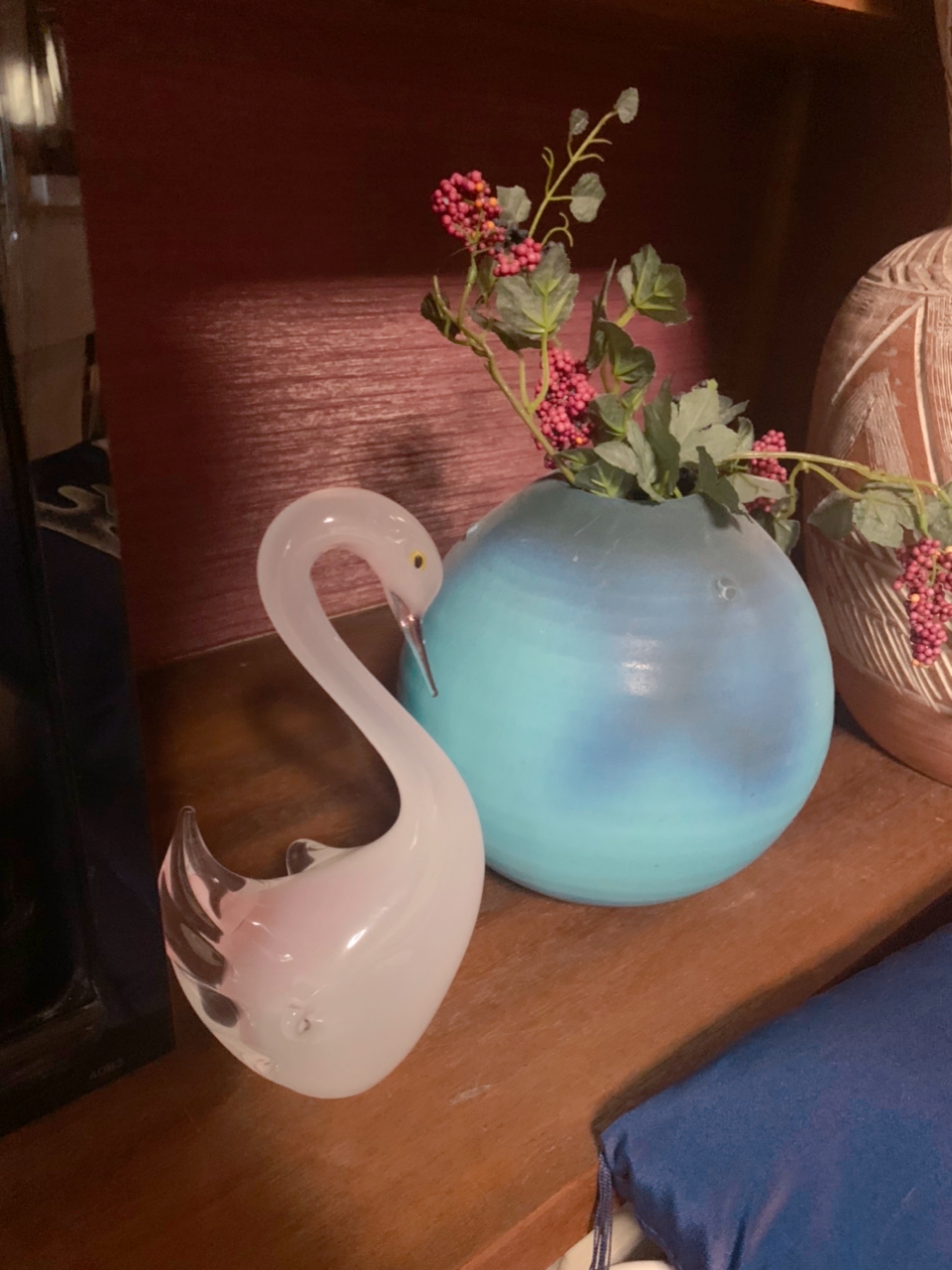 青い壺の横に
