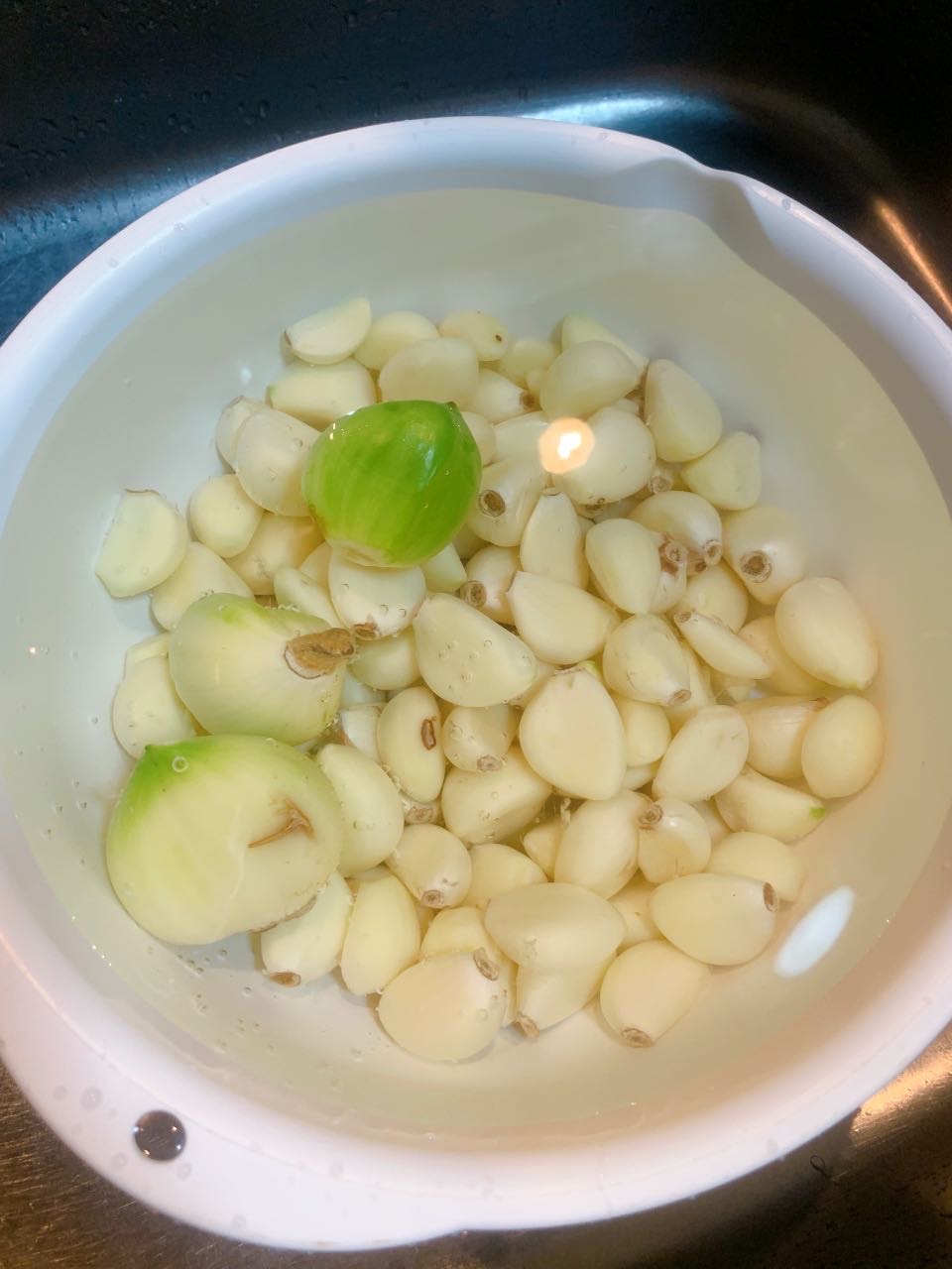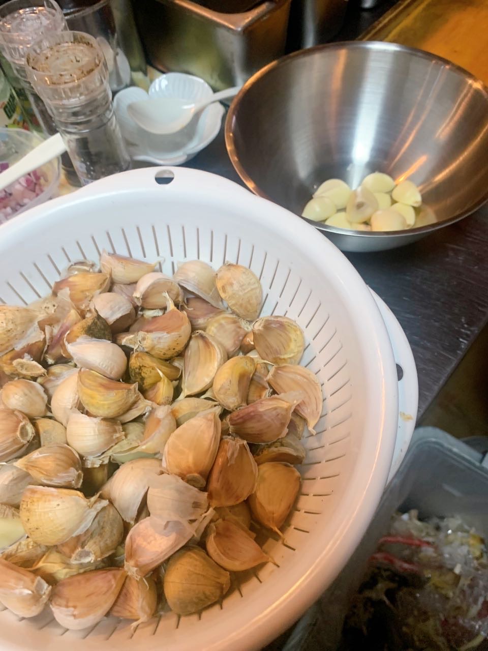大量ニンニクの皮剥き