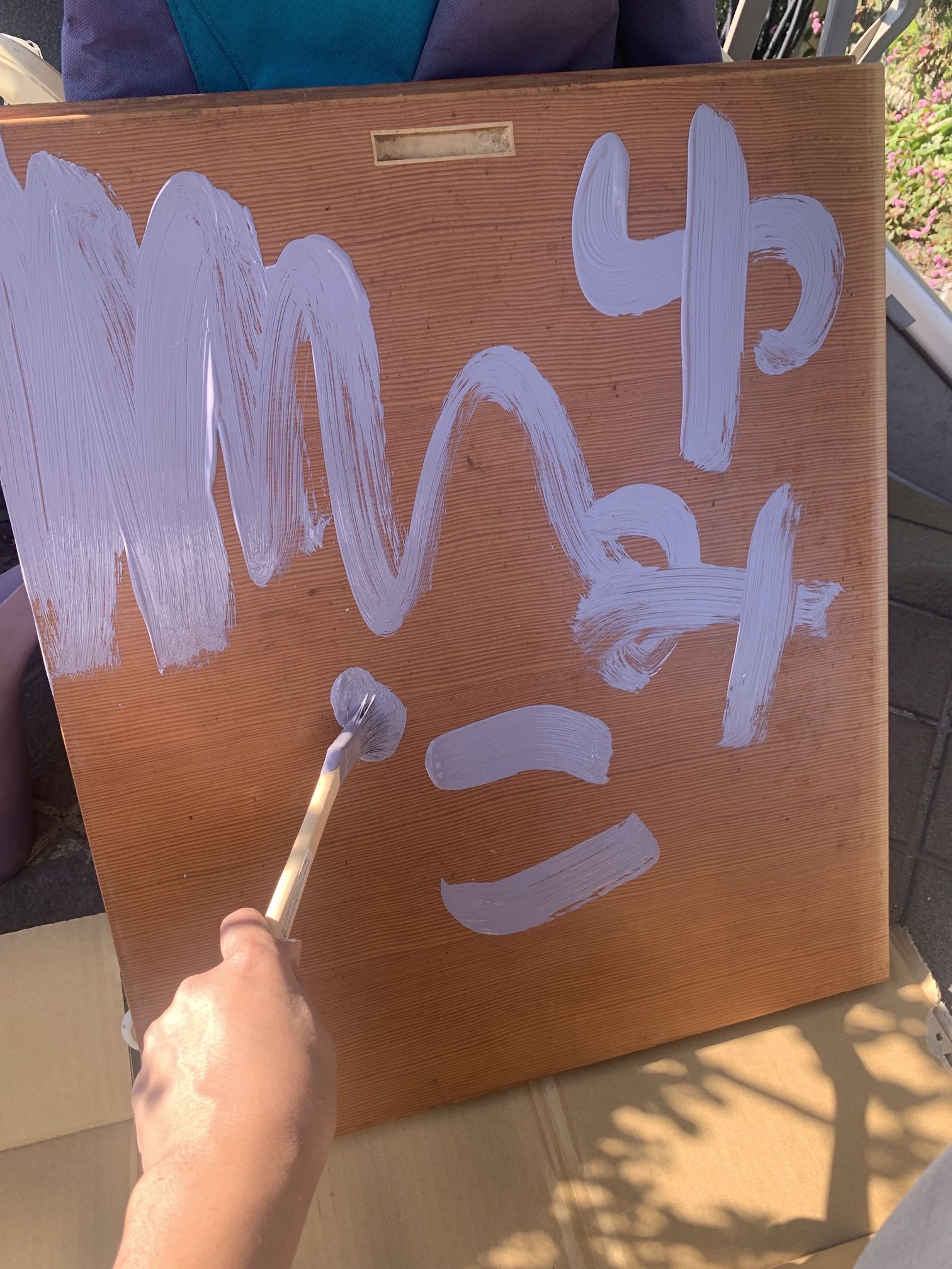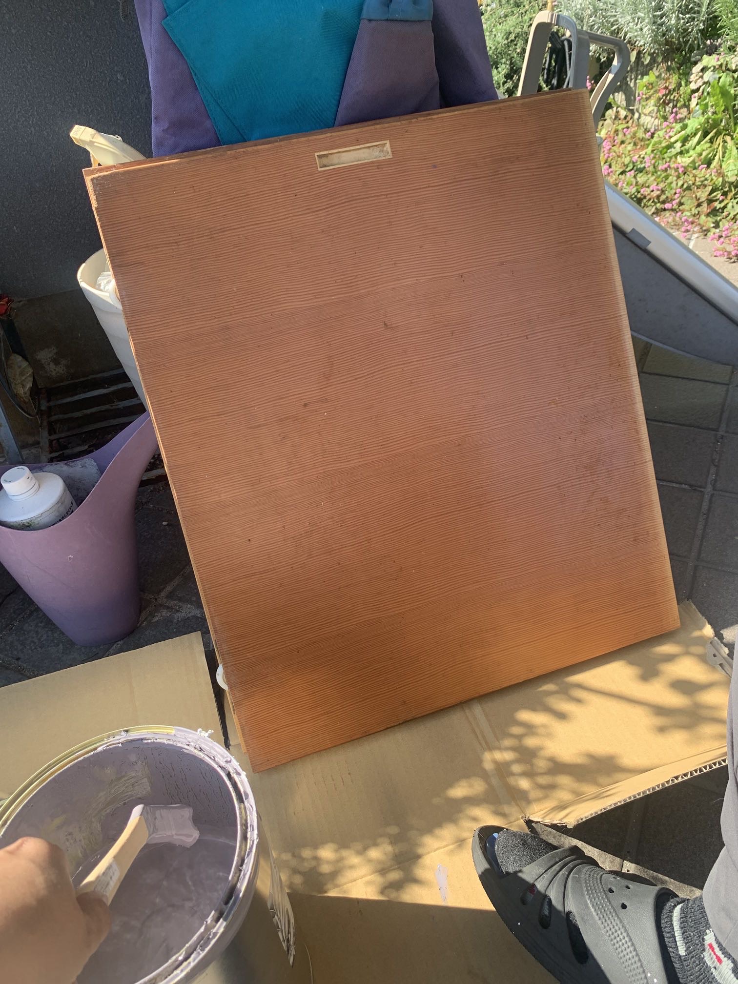 玄関先でペンキ塗り