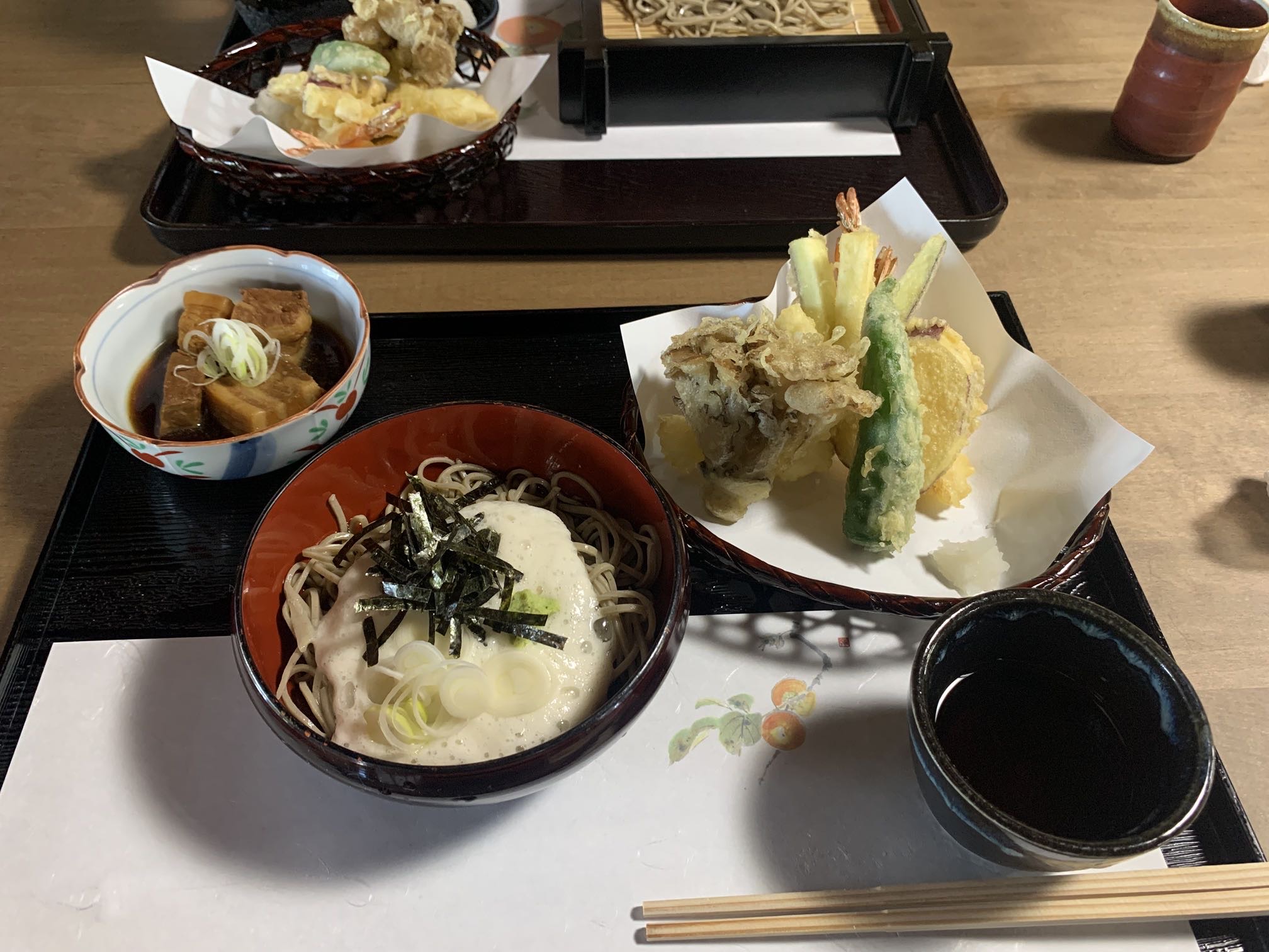 連れはトロロ蕎麦に天ぷら付けてました